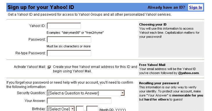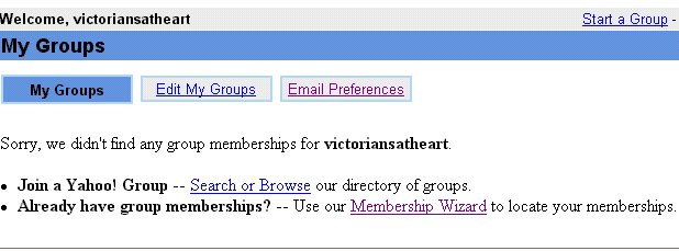If you go to Yahoo groups and do not have an ID this is the screen you will get
